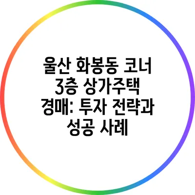 울산 화봉동 코너 3층 상가주택 경매: 투자 전략과 성공 사례