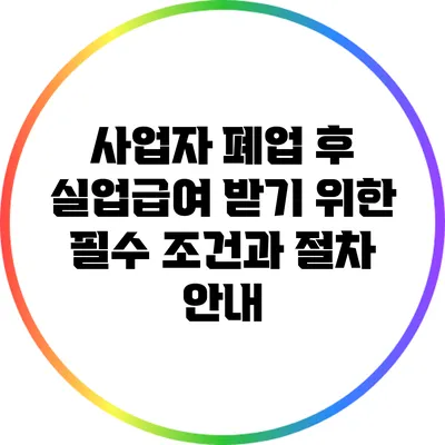 사업을 운영하다 보면 여러 가지 이유로 인해 사업자 등록을 폐업해야 할 때가 있어요. 이런 경우, 실업급여를 받을 수 있는지에 대해서 많은 사람들이 궁금해하지요. 특히, 자영업자들은 실업급여와 같은 지원을 받기가 어려운 경향이 있어서 더욱 고민이 많을 수밖에 없어요. 이번 포스팅에서는 사업자 폐업 후 실업급여를 받기 위한 필수 조건과 절차에 대해 자세히 알아볼게요.