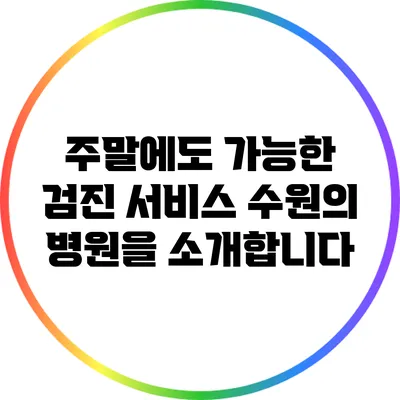 A2: 수원종합병원, 우리아이병원, 수원내과의원이 주말에 운영하며 각각 다양한 검진 서비스를 제공합니다.