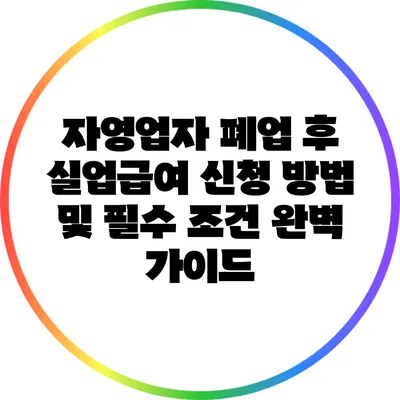 자영업자 폐업 후 실업급여 신청 방법 및 필수 조건 완벽 가이드